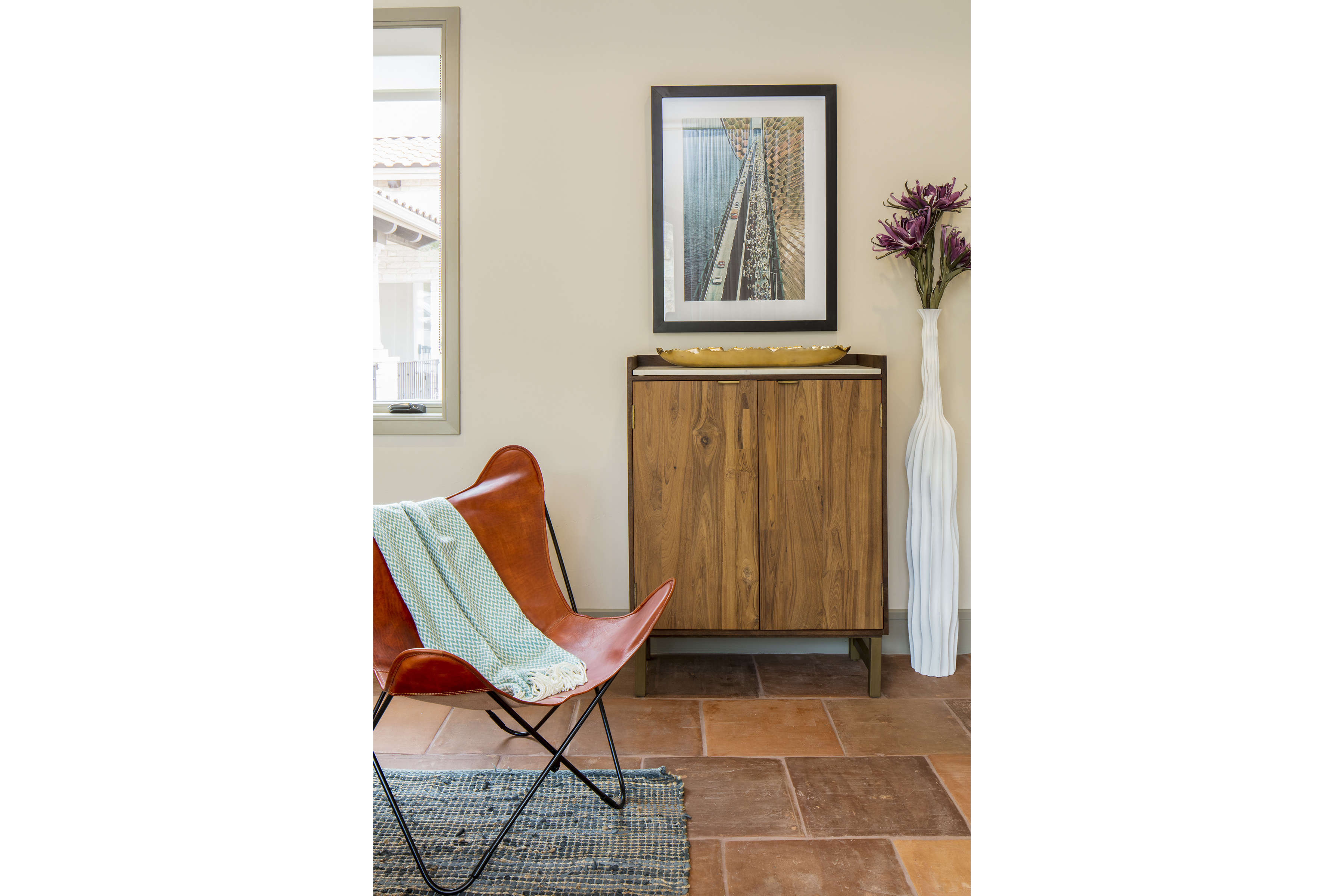 Artwork is the finishing touch to any design project. For the best results, hang your artwork at an eye level. Be sure to choose pieces with subject matter that complements the theme of the room and enhances the desired mood to create an interior design that flows effortlessly from a piece to piece.